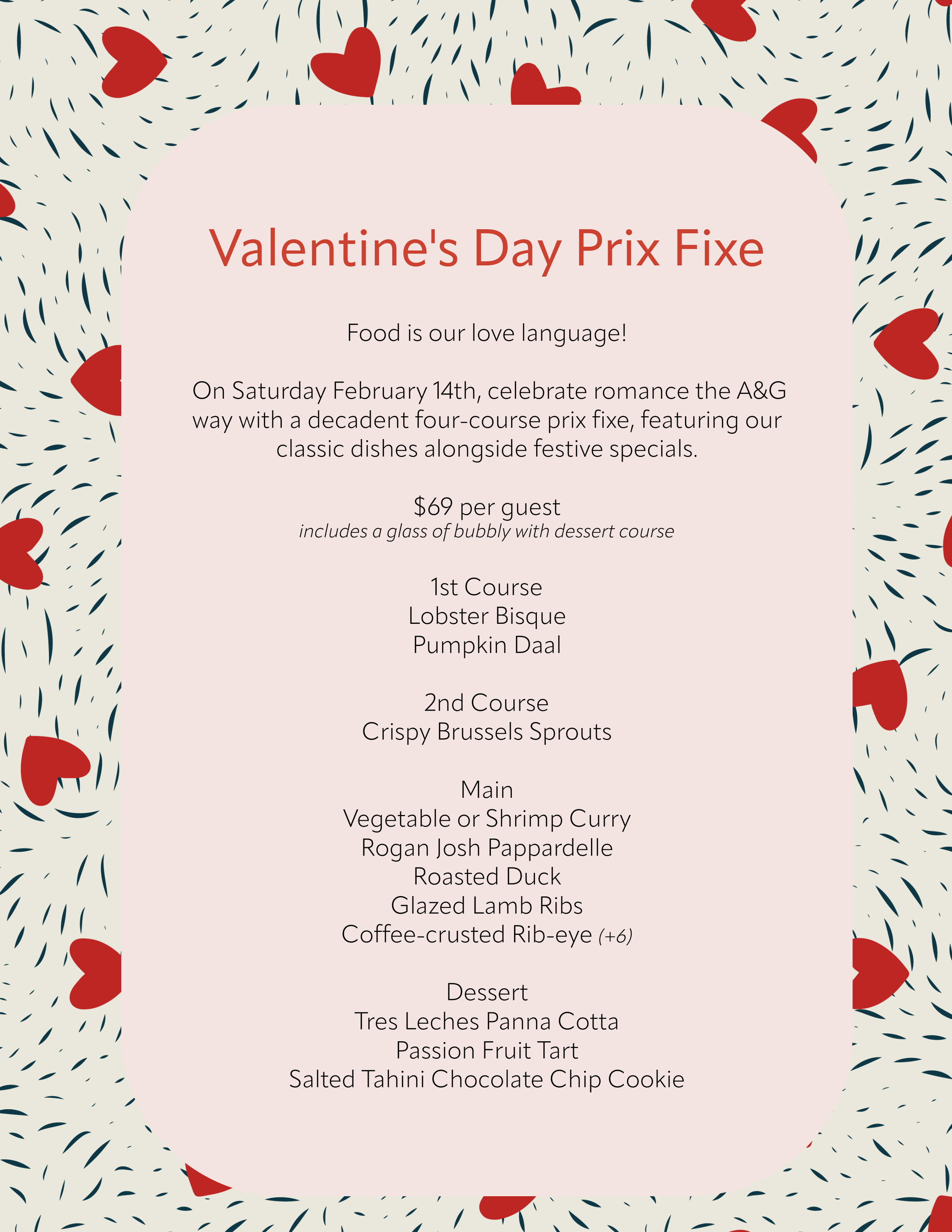 Reservations for Valentine’s Day Dinner Prix Fixe - Dining RoomReservations for Valentine’s Day Dinner Prix Fixe - Bar Seating